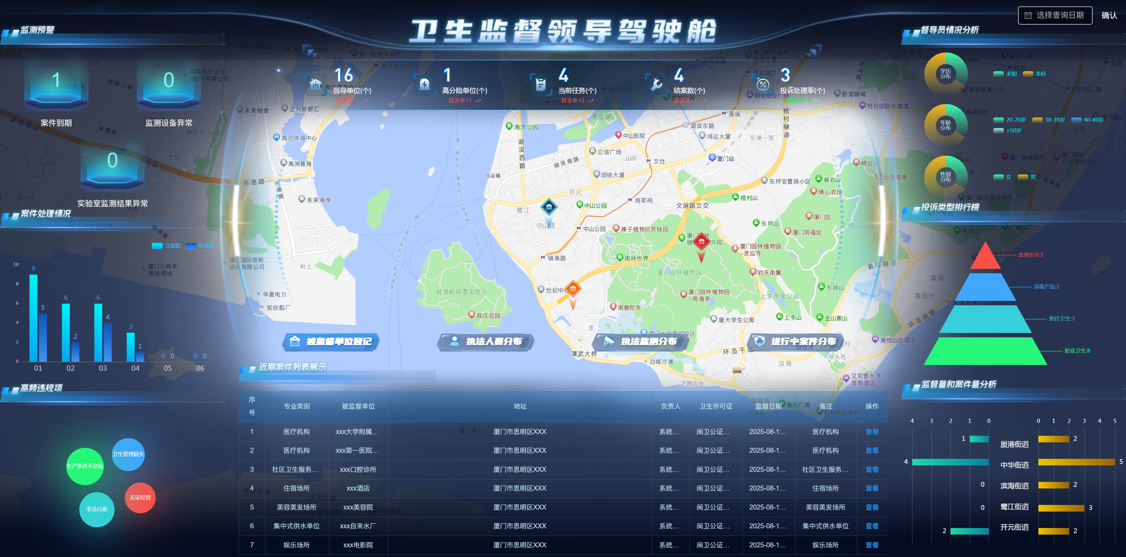 “智慧衛(wèi)監(jiān)綜合監(jiān)管服務(wù)管理系統(tǒng)”涵蓋監(jiān)督執(zhí)法應(yīng)用、非現(xiàn)場執(zhí)法應(yīng)用、碼上監(jiān)管、可視化駕駛艙、信息交換系統(tǒng)等內(nèi)容,實(shí)現(xiàn)加強(qiáng)衛(wèi)生監(jiān)督綜合執(zhí)法能力建設(shè),依法推進(jìn)衛(wèi)生監(jiān)督工作,不斷創(chuàng)新衛(wèi)生監(jiān)督執(zhí)法手段,提高衛(wèi)生監(jiān)督的監(jiān)管和應(yīng)急處置水平,通過建設(shè)智慧衛(wèi)監(jiān)系統(tǒng),將傳統(tǒng)現(xiàn)場監(jiān)管與非現(xiàn)場物聯(lián)網(wǎng)智能監(jiān)督監(jiān)測手段相結(jié)合,解決目前衛(wèi)生監(jiān)督機(jī)構(gòu)無法及時(shí)掌握和處置突發(fā)狀況的問題,做到在第一時(shí)間獲取現(xiàn)場數(shù)據(jù),在事件發(fā)生、升級前提前預(yù)警和處置,提高執(zhí)法效率。